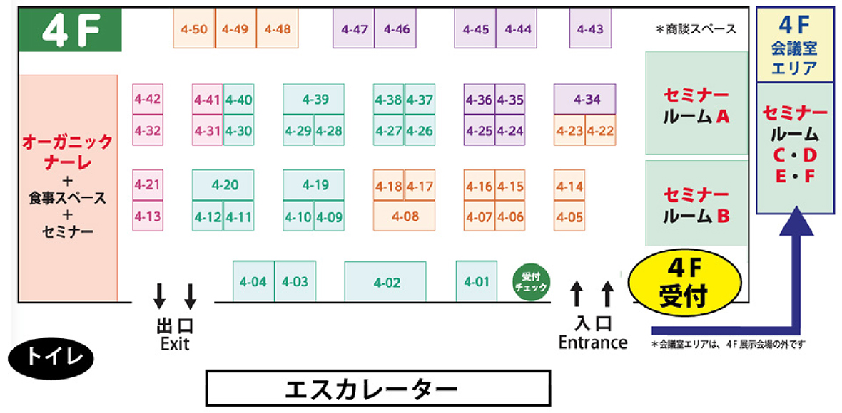 セミナールームは全て 4F 展示ホール内と会議室エリアにございます。
