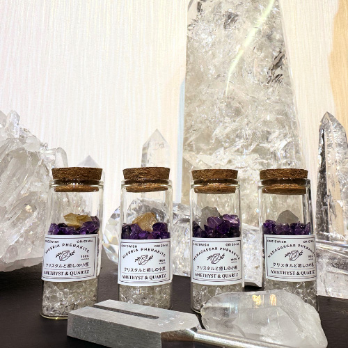 ONE’S WISH プレミアム天然石が集まるお店 世界中から厳選した天然石を通じて、心と体を整える癒しの時間をお届けします。レムリアンシードクリスタルなど、高波動のクリスタルがあなたの内なる輝きを呼び覚まします。 #物品販売 #新メソッド&アイテムの紹介 当日のお得情報! 【クリスタルと癒しの小瓶】当店で大人気のクリスタルチューナーとモンドクォーツがセットになった小瓶がこの展示会のみ20%オフ!! 出展社関連サイト・メディア 出展ブース一覧に戻る TOPに戻る
